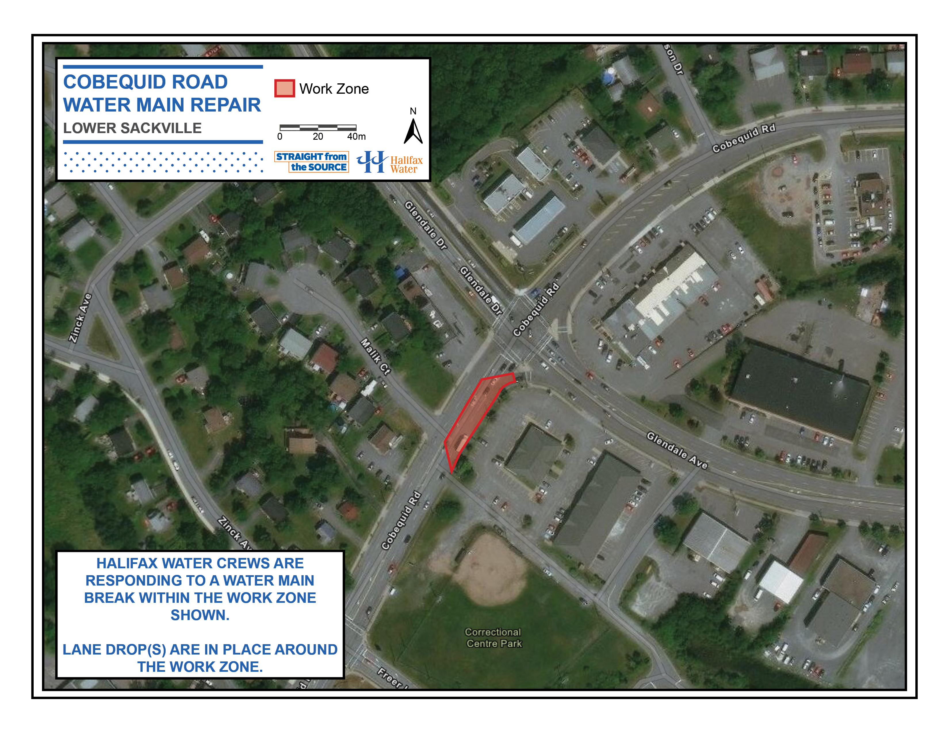 Attention motorists, cyclists and pedestrians, Halifax Water crews remain on-site finishing up road work following the water main repair near the intersection of Cobequid Road and Glendale Avenue.