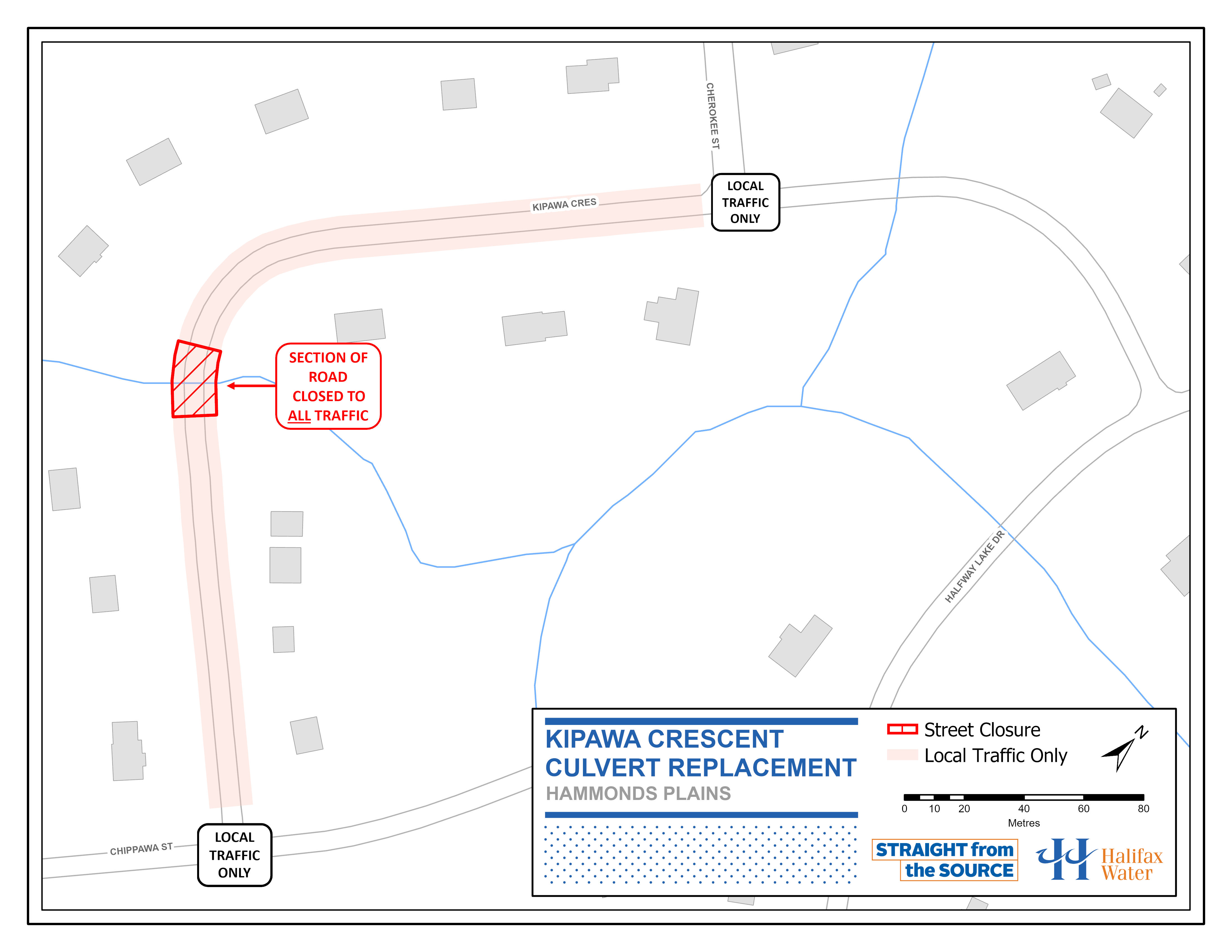Dexter Construction, on behalf of Halifax Water, will be replacing a culvert near 14 Kipawa Crescent. Work is now expected to continue until October 9, weather depending. Hours of work will be Monday - Friday, 7:00 AM - 7:00 PM with evenings and weekends as required. Kipawa Crescent will be closed to all traffic in the work area. Access to all properties on Kipawa Crescent will be maintained.