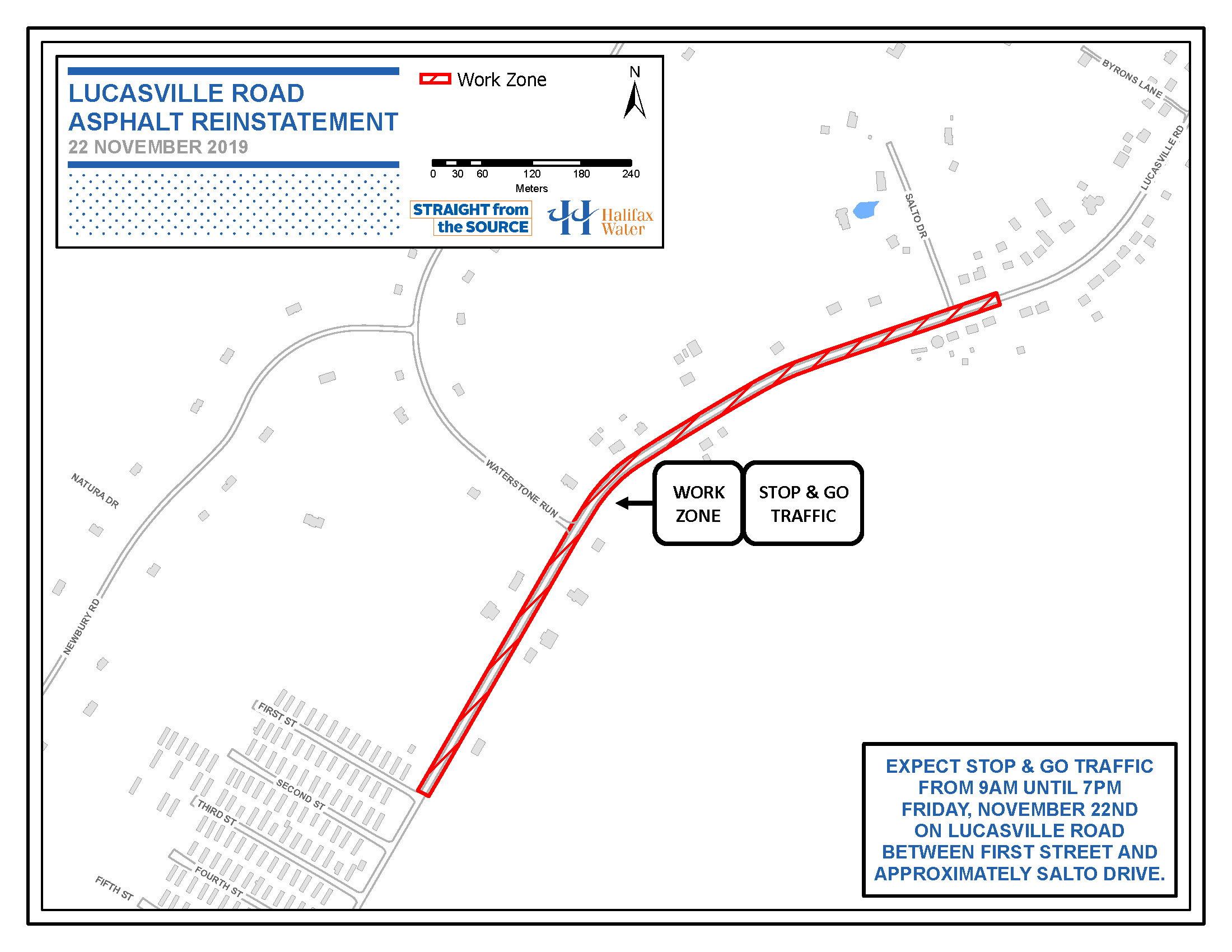Attention motorists, cyclists and pedestrians, Atlantic Road Construction and Paving (ARCP), on behalf of Halifax Water will be undertaking asphalt reinstatement work on Lucasville Road tomorrow (Friday, November 22nd).