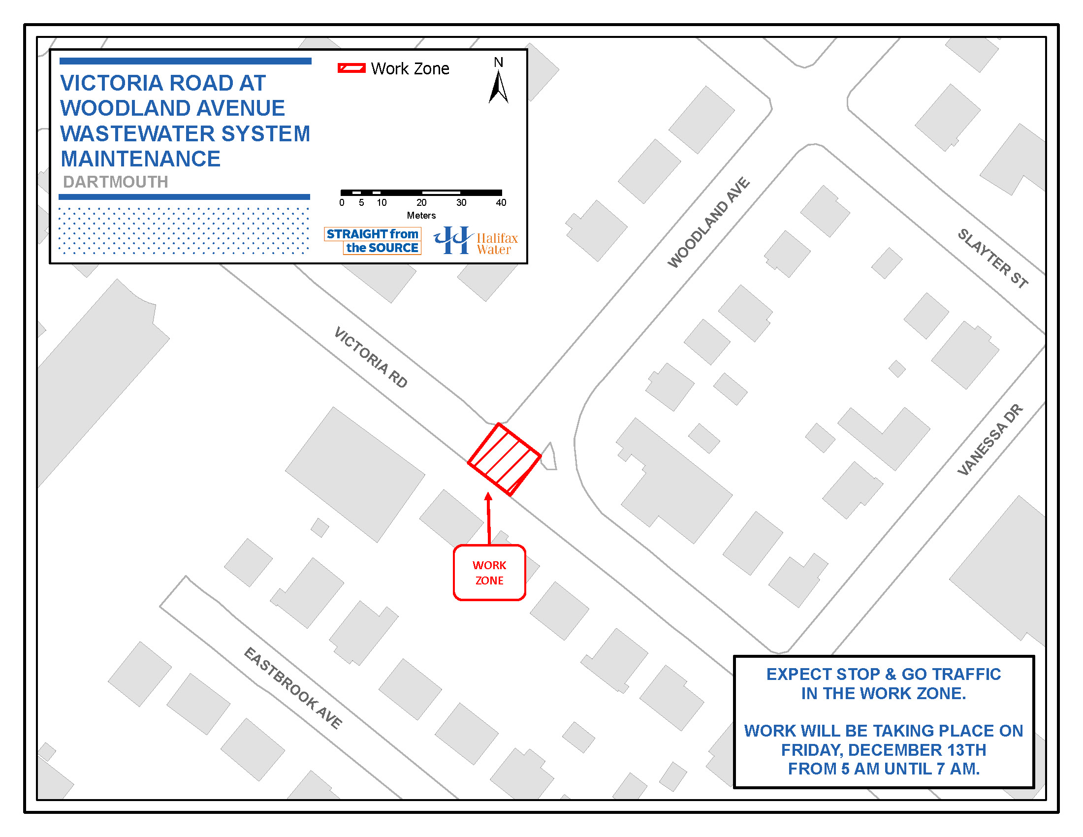 Attention motorists, cyclists and pedestrians, Halifax Water crews will be undertaking wastewater (sewer) system maintenance in the intersection of Victoria Road and Woodland Avenue tomorrow (Friday, December 13, 2019).