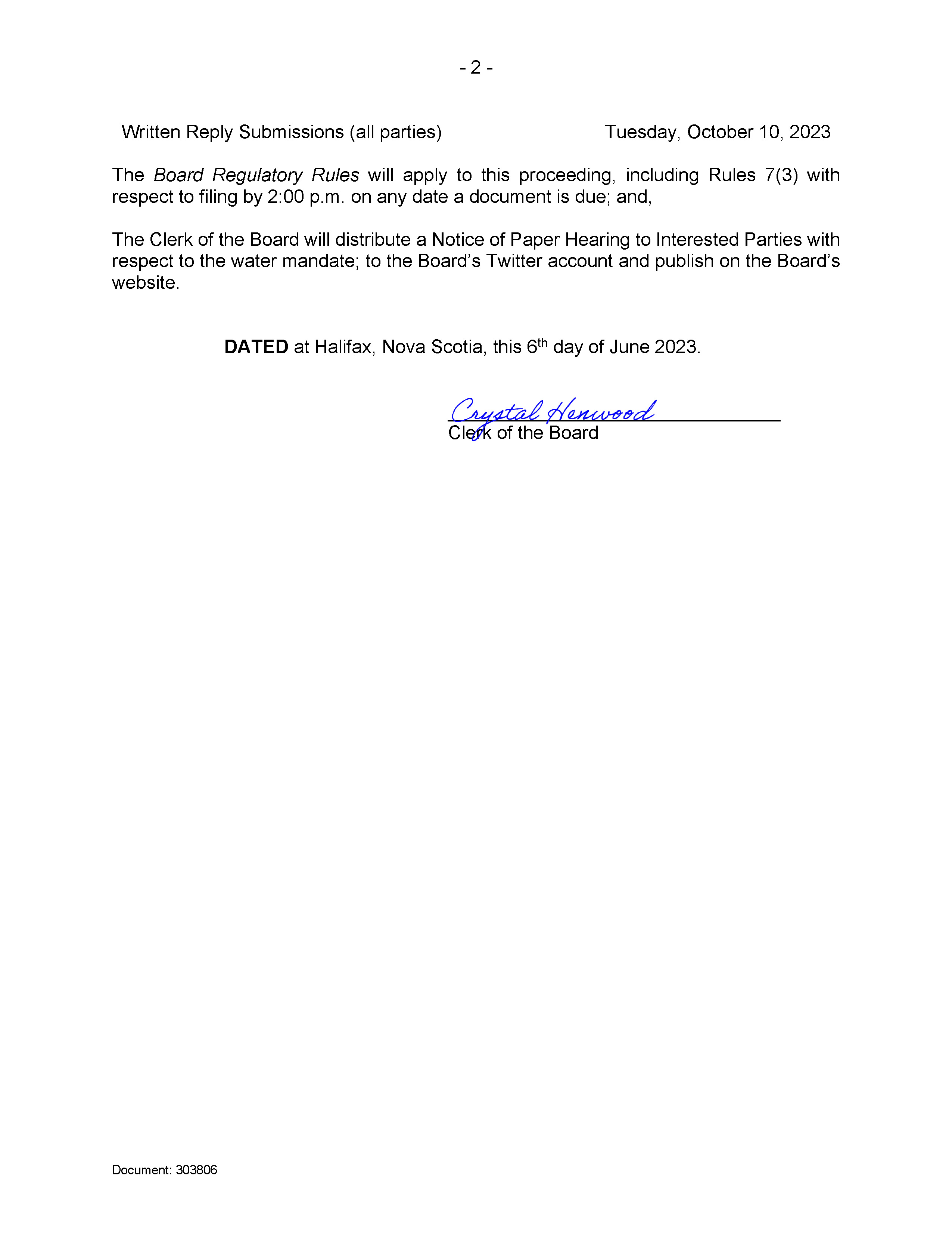 - December 6, 2023 - Amended Notice of Paper Hearing